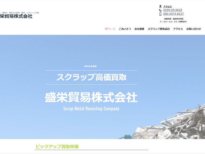 茨城県潮来市にある金属リサイクル業の盛栄貿易様のサイトをwix5ページプランで作成しました。SEO対策や写真画像更新は盛栄貿易様自ら行われるプランです。